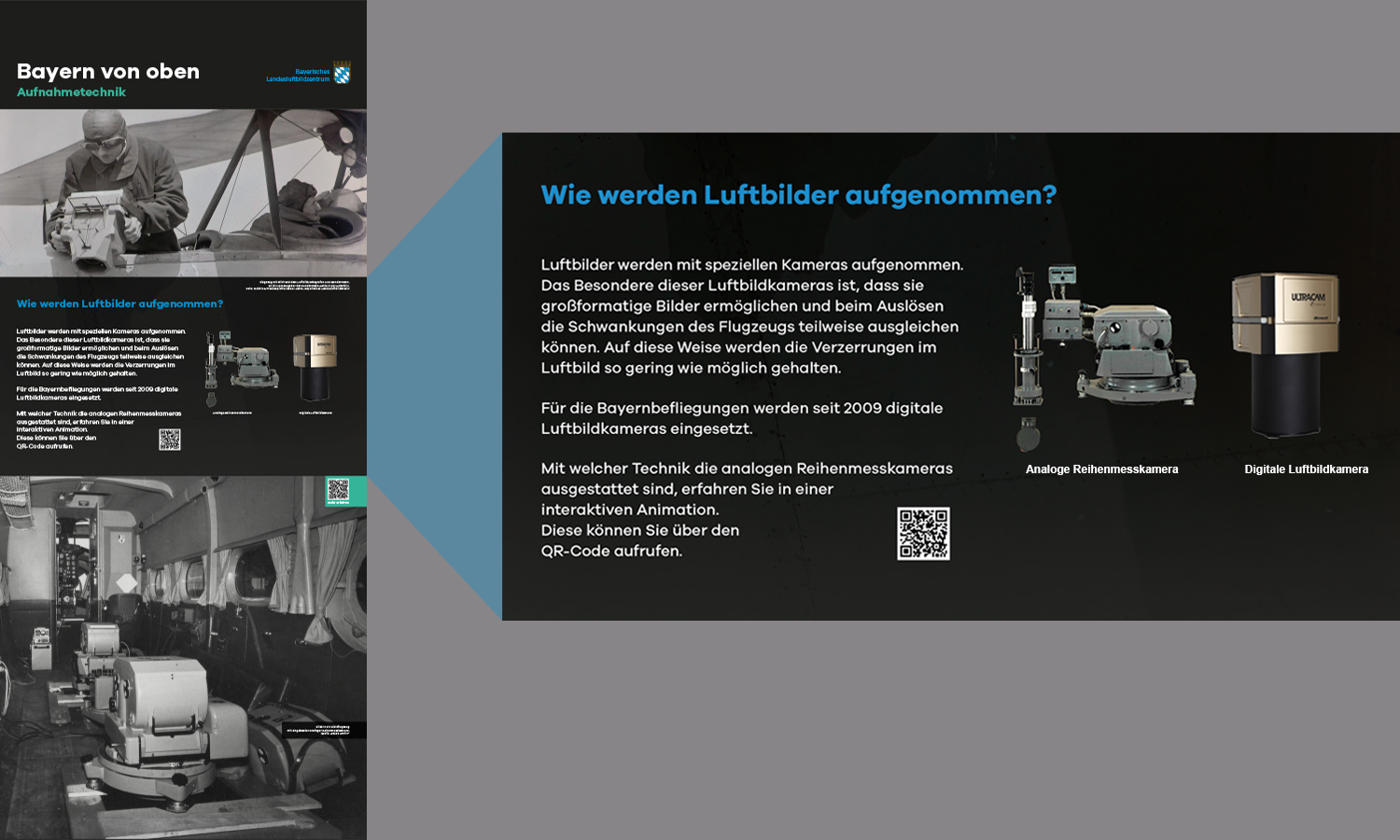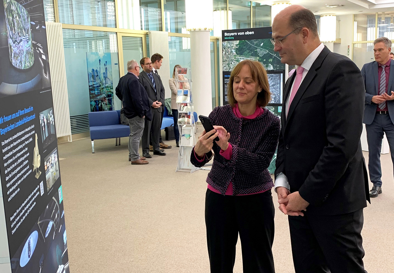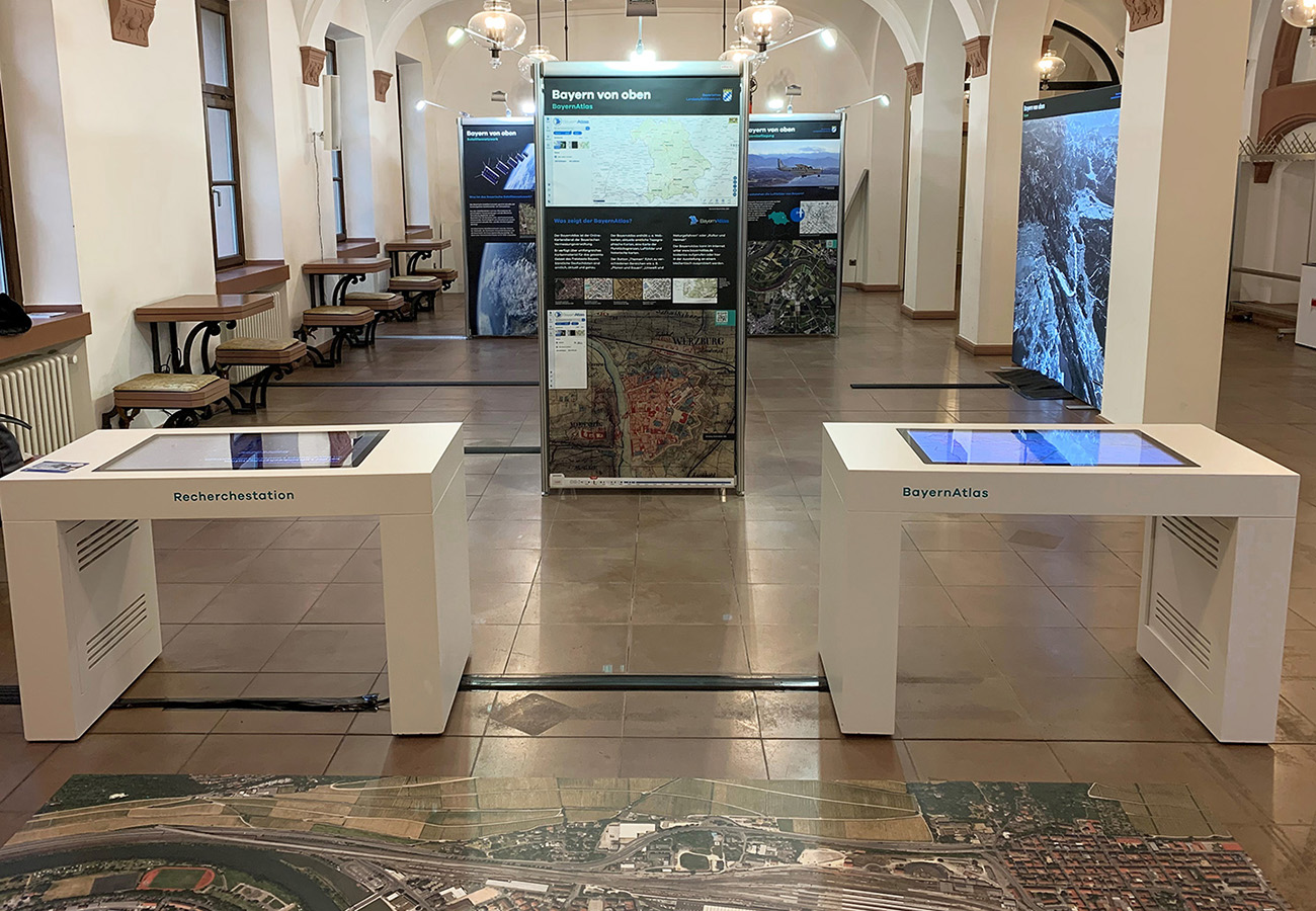 Anlässlich des fünfjährigen Bestehens des Bayerischen Landesluftbildzentrums stellte die Wanderausstellung dessen Angebote einem breiten Publikum vor. Die multimedial gestaltete und leicht verständlich aufbereitete Ausstellung vermittelt einen spannenden Einblick in die Geschichte und Technik der Luftbildfotografie. Auf 14 Ausstellungstafeln wurde den Besucherinnen und Besuchern gezeigt, wie Luftbilder gemacht werden, wie sie aufbereitet werden und wo sie eingesetzt werden.